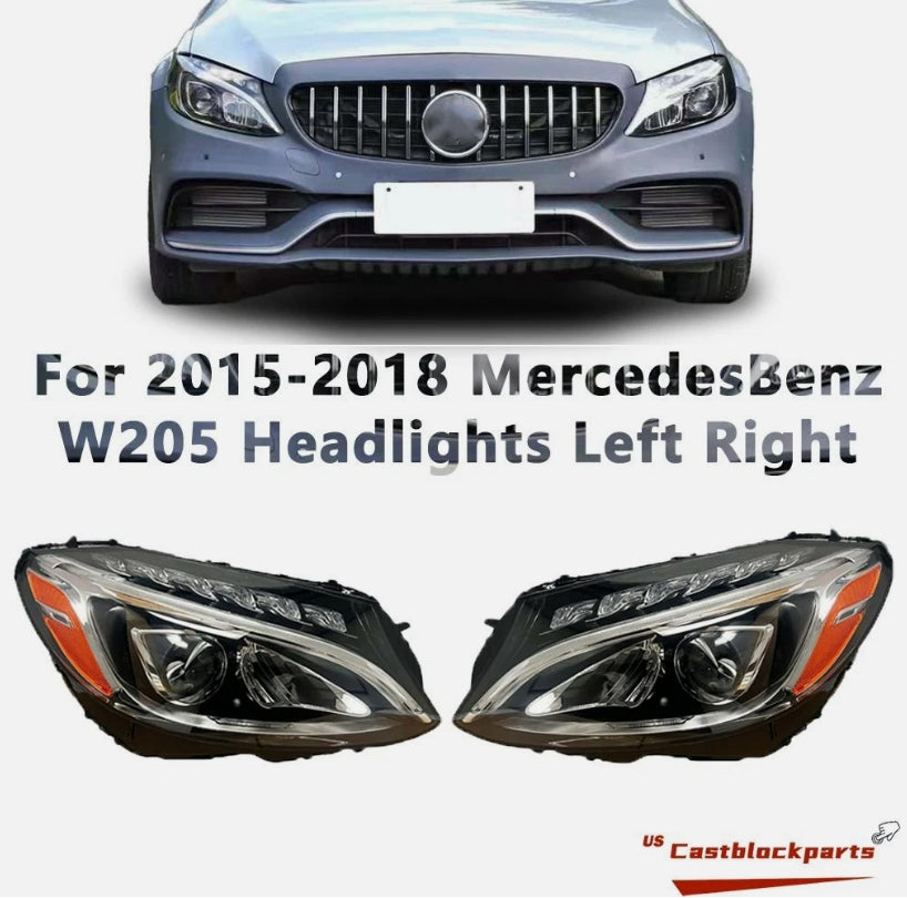 2015-2018 Mercedes C-Class C300 W205 LED Headlight Left+Right Side Pair Set