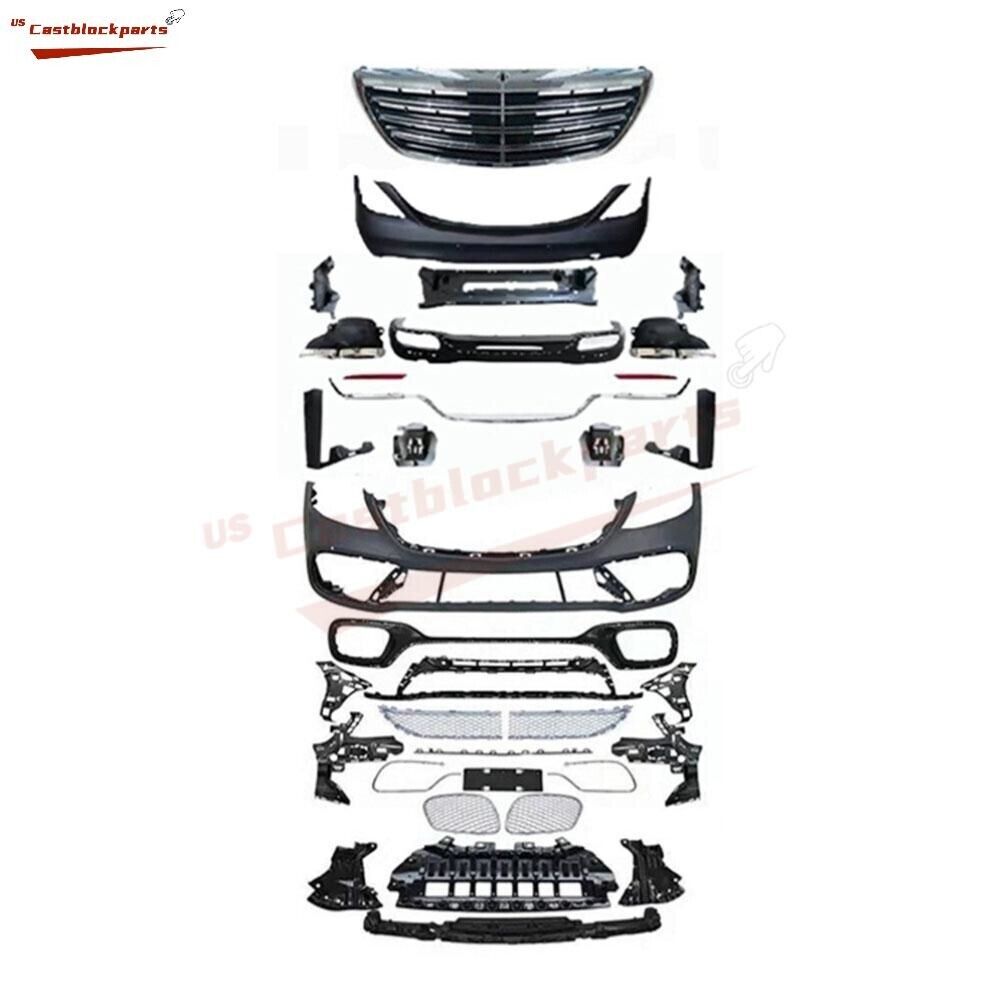 For Mercedes Benz S-Class W222 2014-2017 Facelift 2018+ S65 AMG Style Body Kit Bumper Grille Headlights