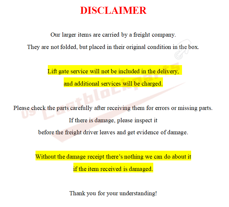 Please check whether the parts are correct the first time after receiving the goods. If there is a problem, please contact us immediately to avoid missing the after-sales period because of too long. If you have any questions please contact us, DN NOT directly give us negative feedback, we will do our best to solve the problem for you. Thank you!