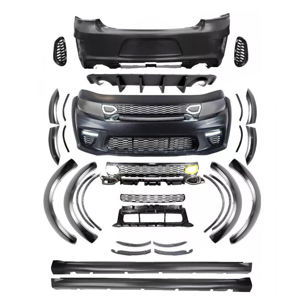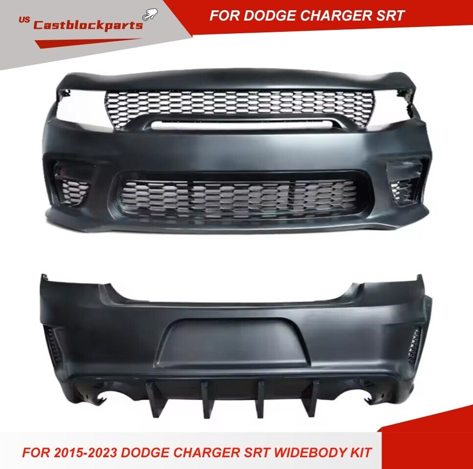 Fit 2015-23 Dodge Charger Widebody Kit SRT Front and Rear Bumper with LED Grille