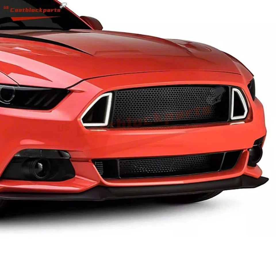 Fits 15-17 Ford Mustang Front Bumper Hood Upper Mesh Grille With LED Lights