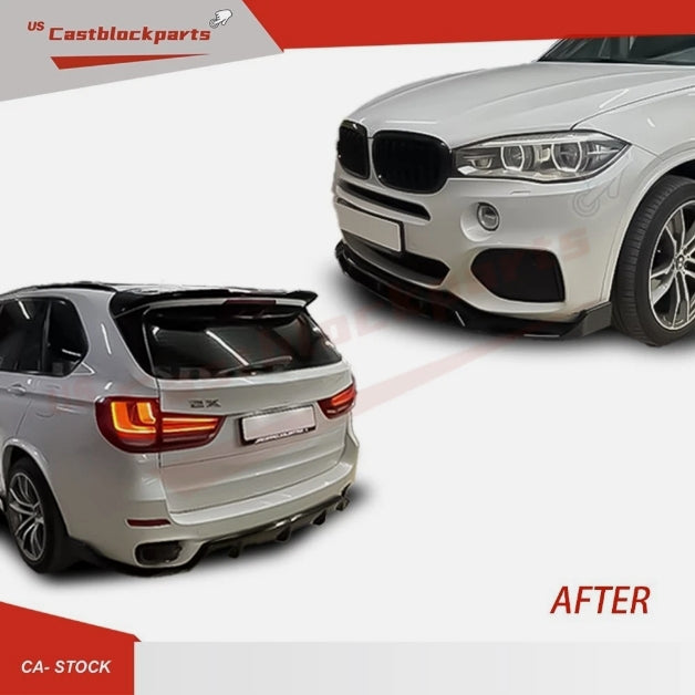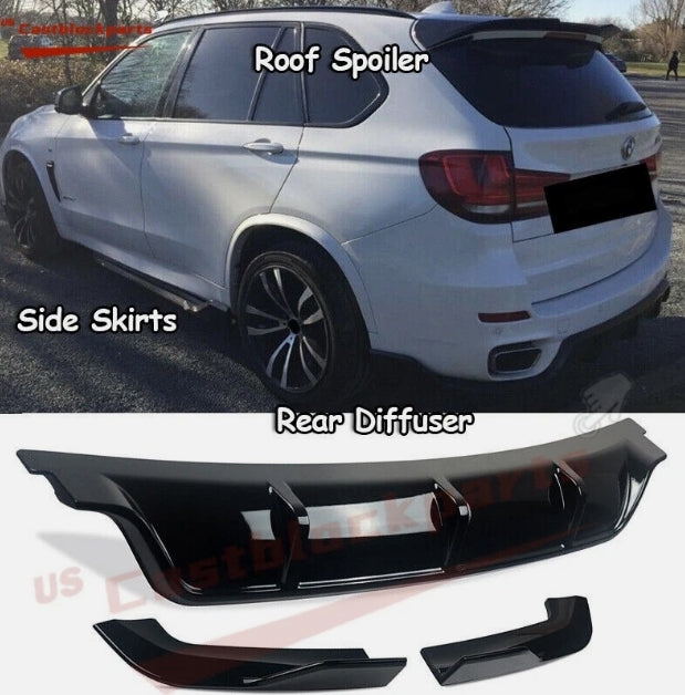 For 13 14 15 16 17 18 BMW F15 X5 M Sport Look Front+Rear Lip+Side Skirts Bumper