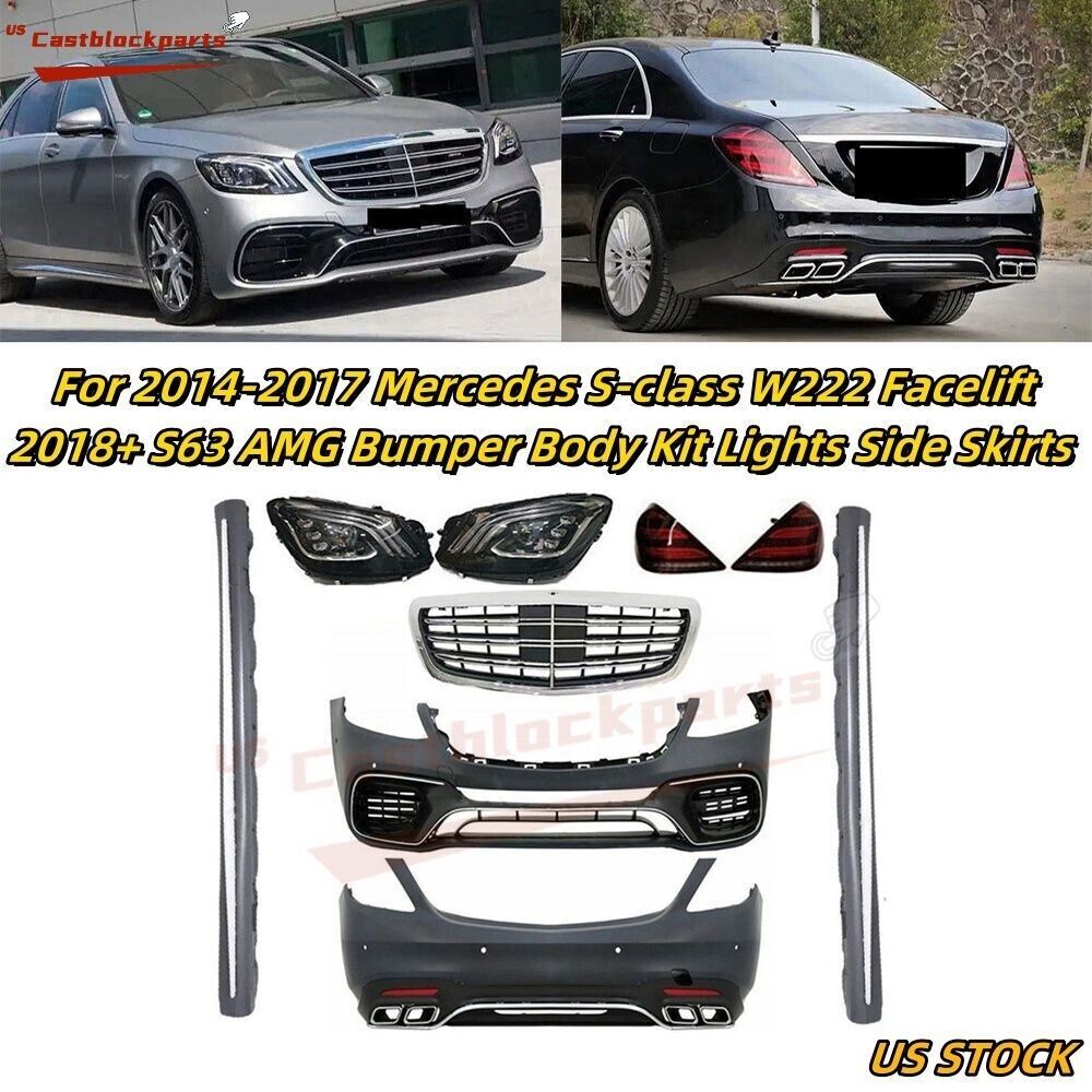 For 14-17 Mercedes S-class W222 Upgrade 18+ S63 AMG Bumper Kit Light Side Skirts