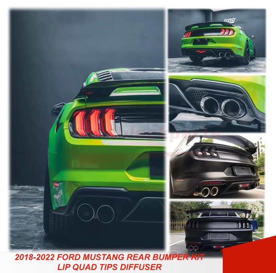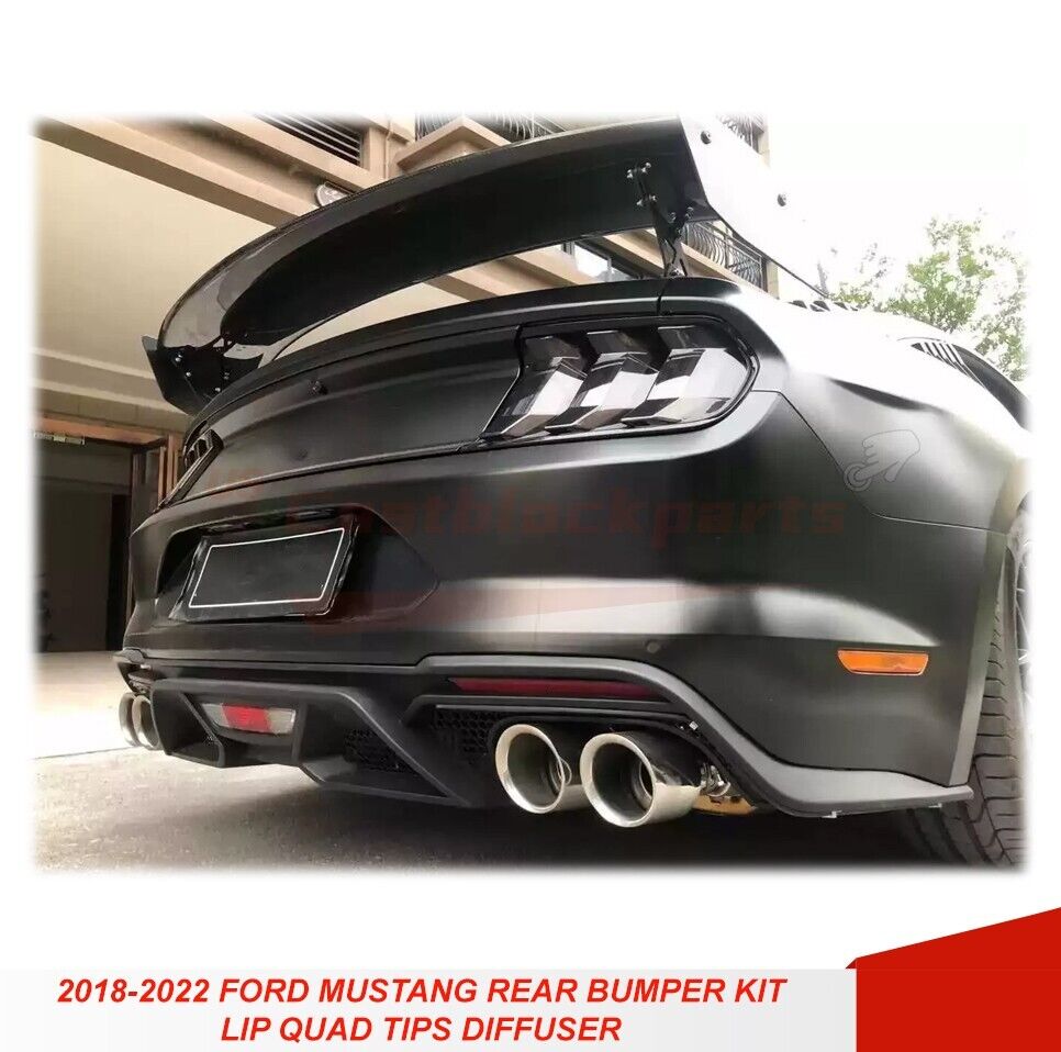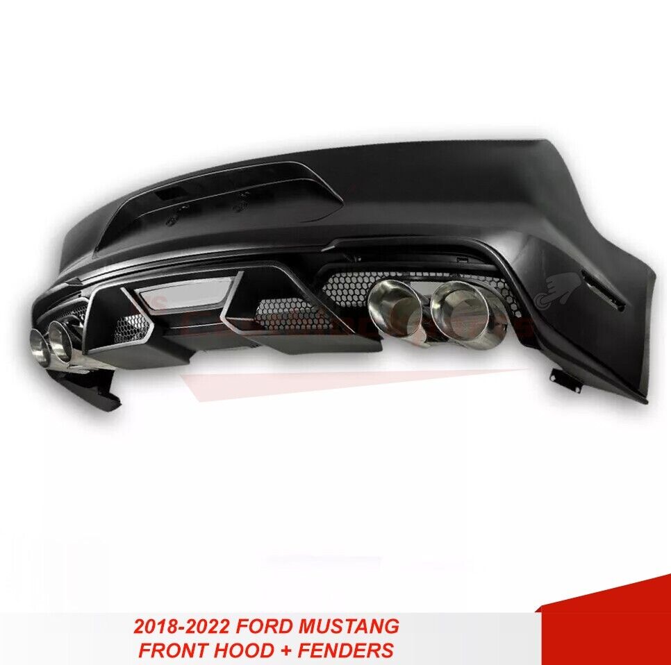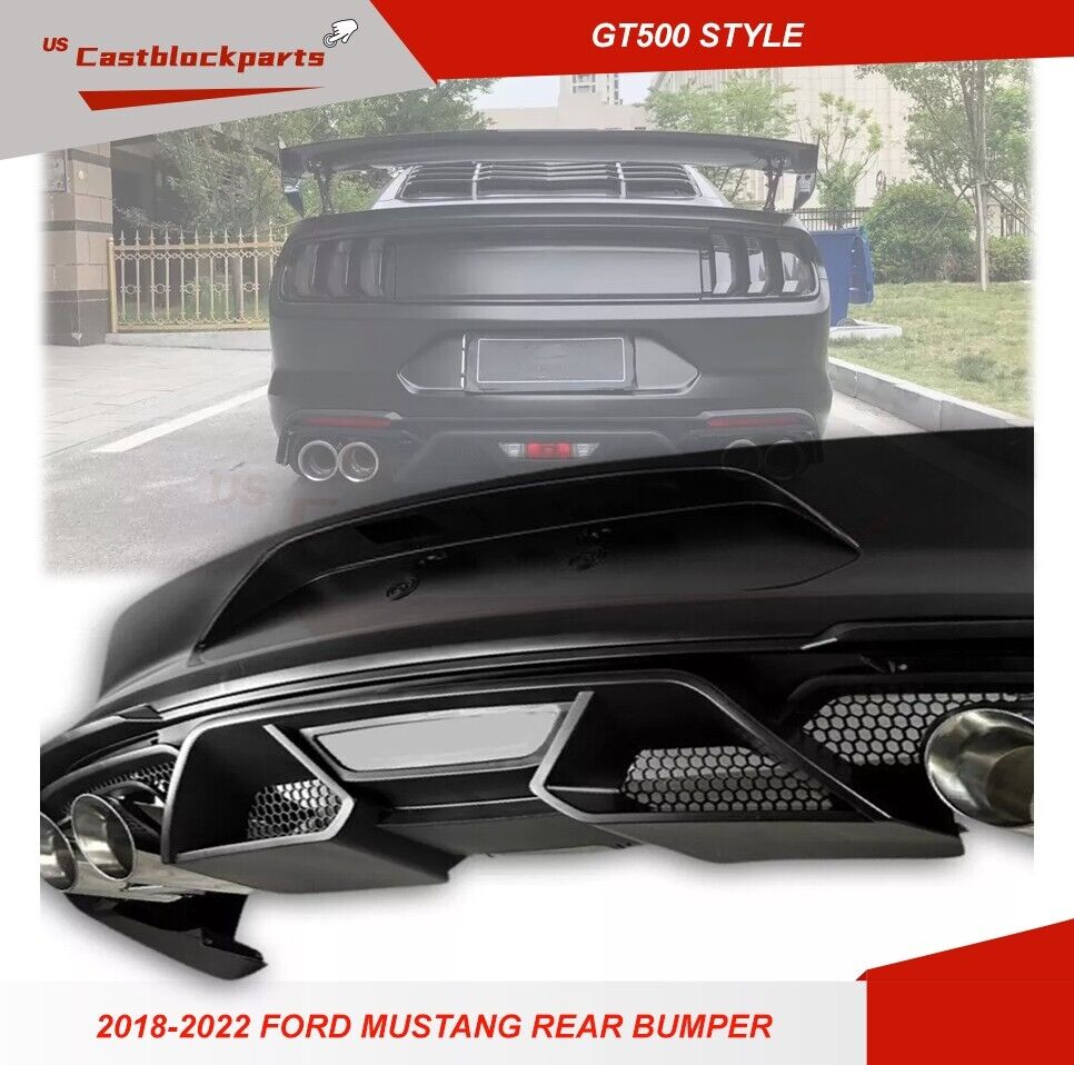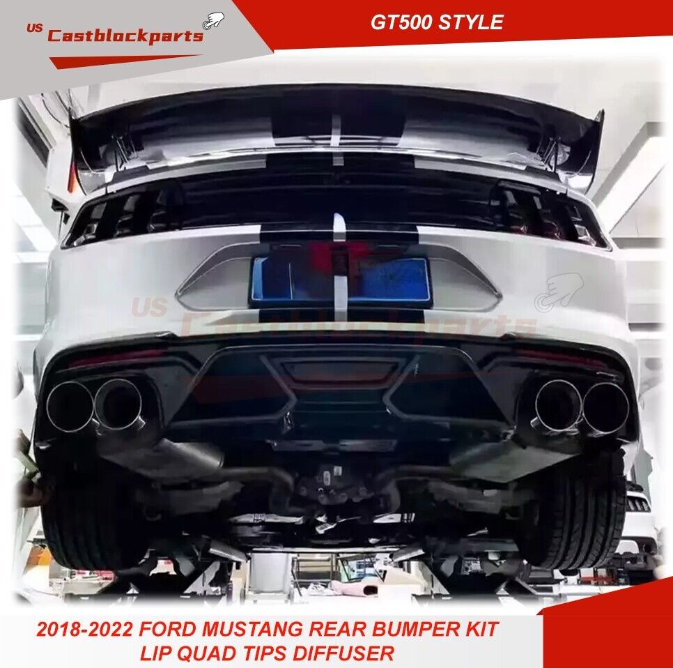 For 18-22 Ford Mustang GT500 Style Rear Bumper + Exhaust Tips Diffuser Bodykit