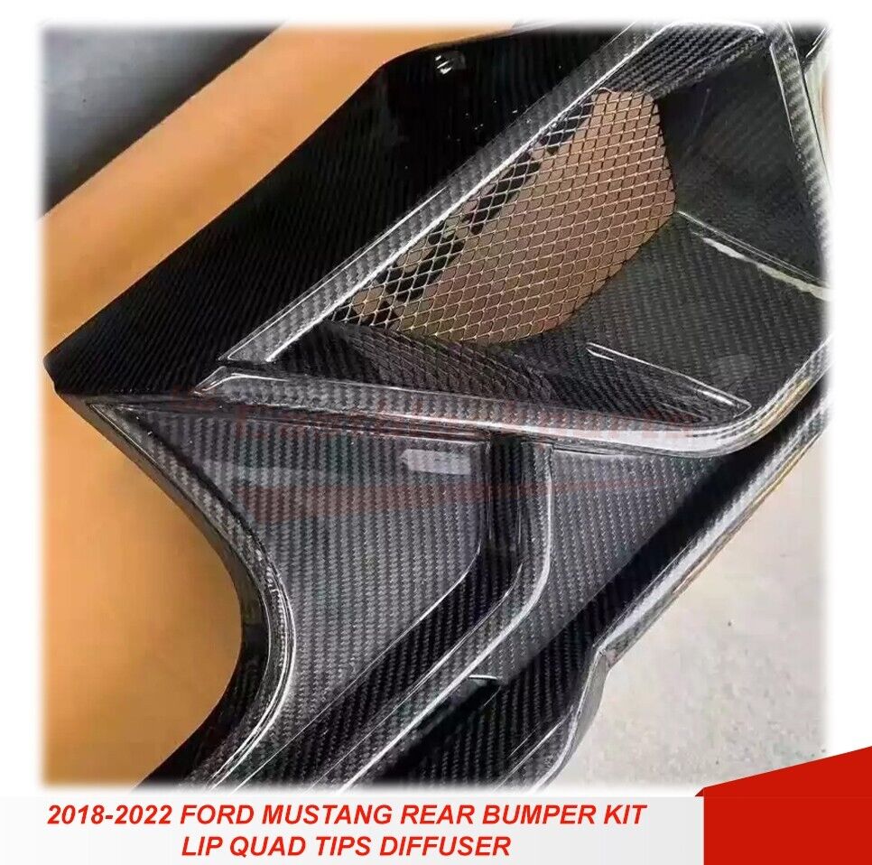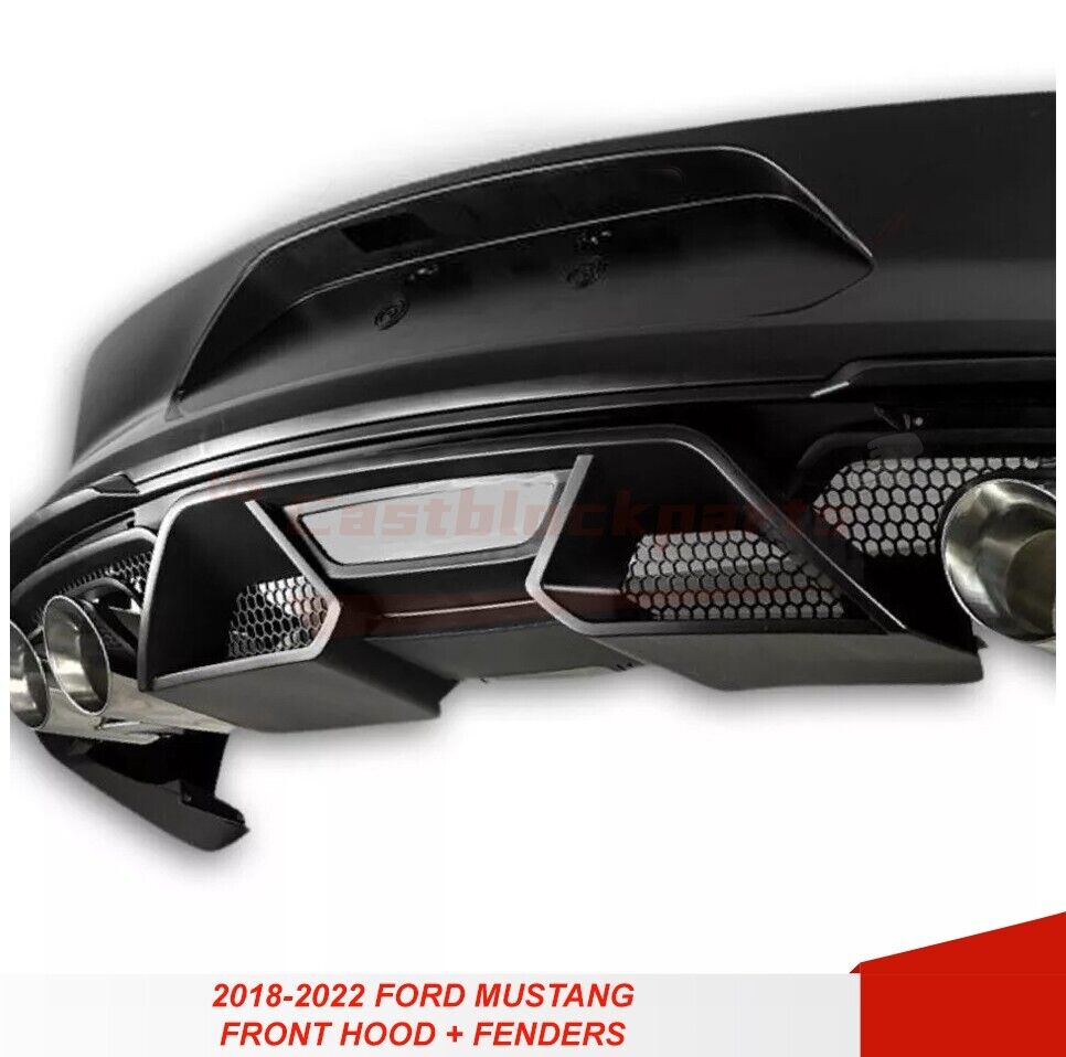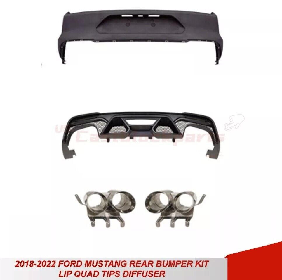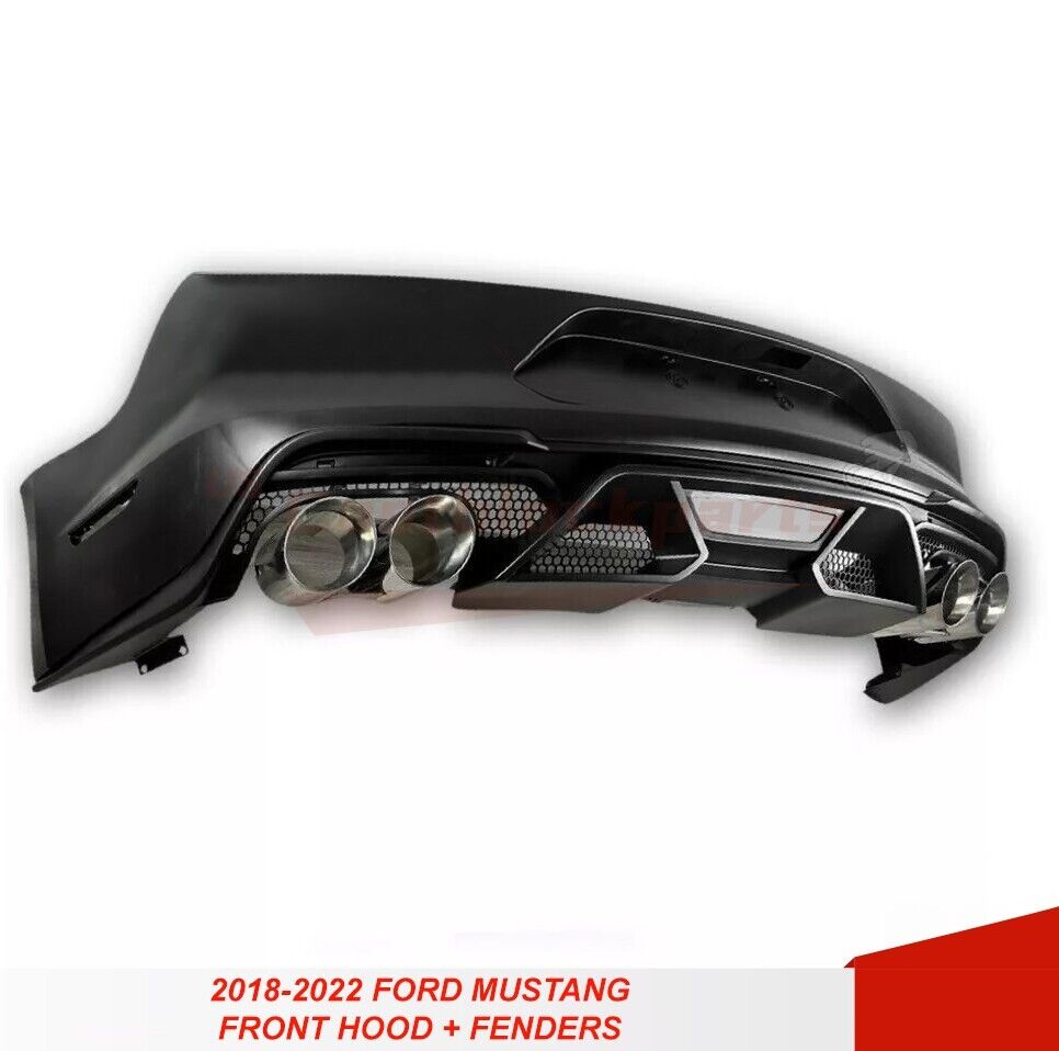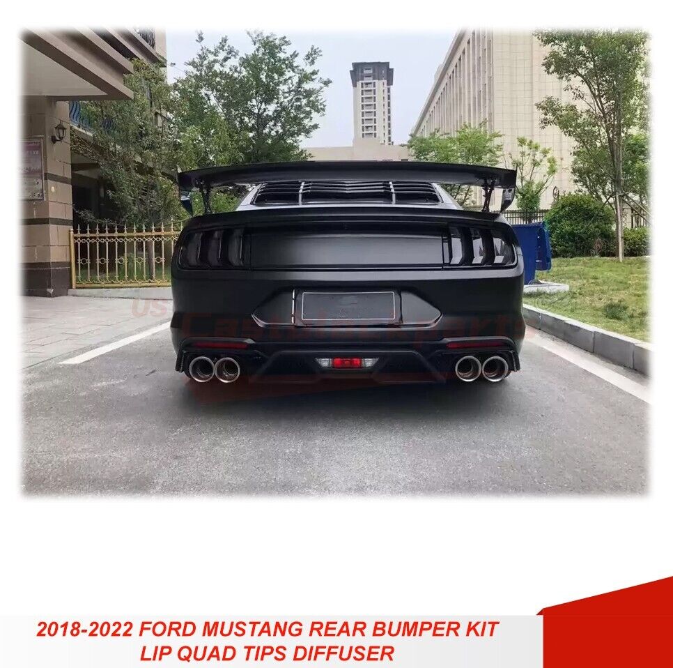For 18-22 Ford Mustang GT500 Style Rear Bumper + Exhaust Tips Diffuser Bodykit