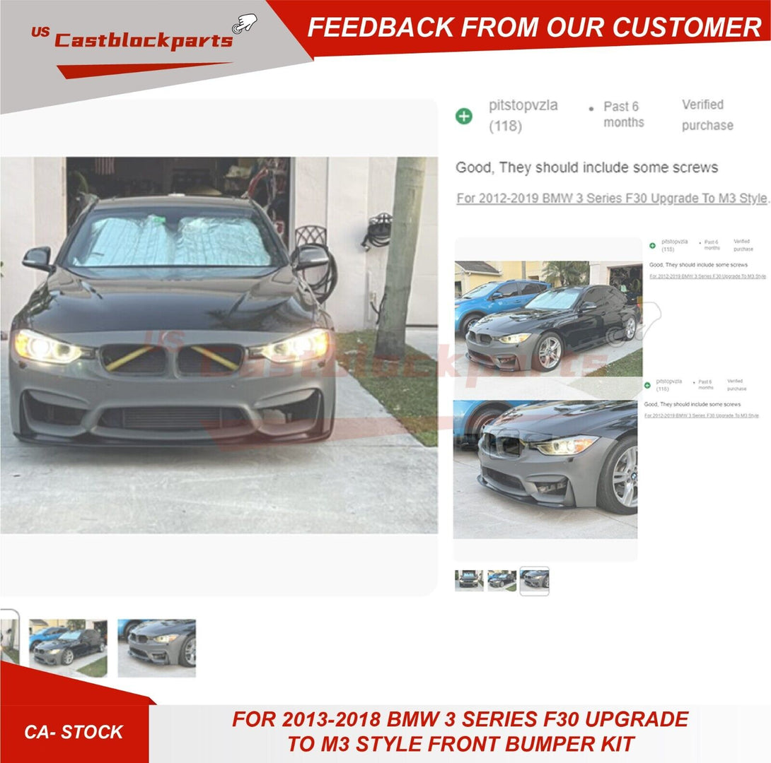 For 2012-2019 BMW 3 Series F30 Upgrade To M3 Style Front Bumper Kit W/ Fog holes