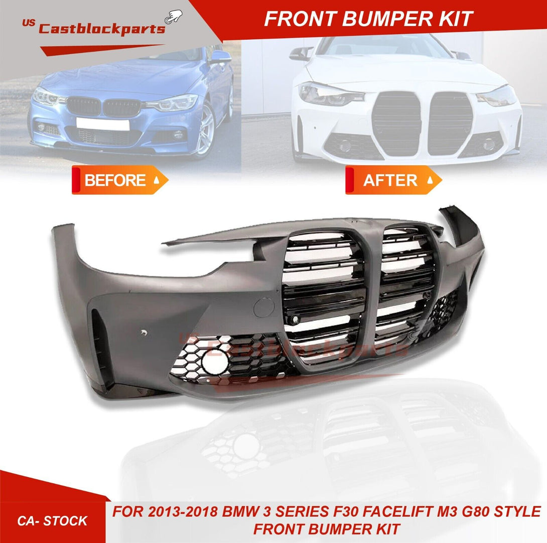 For 2013-18 BMW 3 Series F30 Facelift M3 G80 Style Front Bumper kit W/Fog Lights