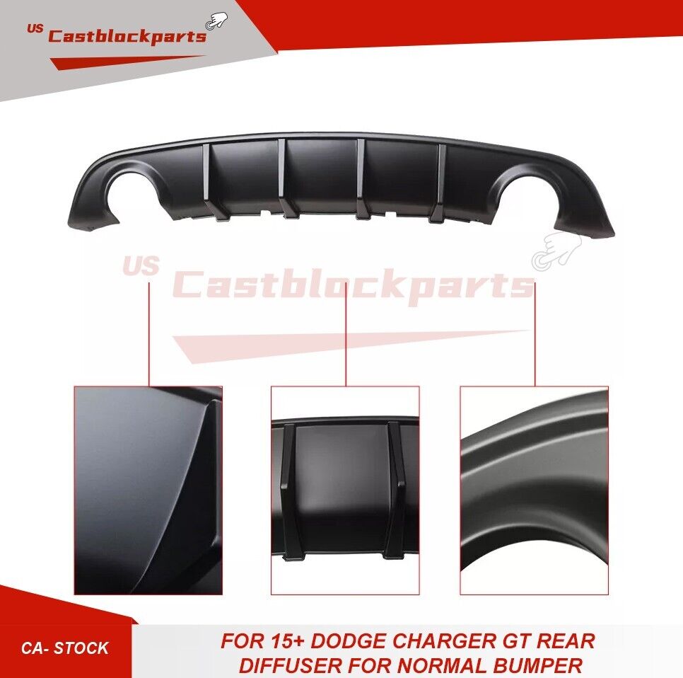 For 2015+ Dodge Charger SXT/GT Rear Bumper Diffuser Lip Shark Fin Matte Black