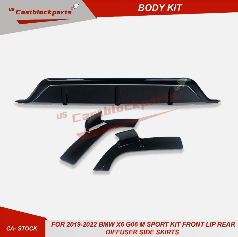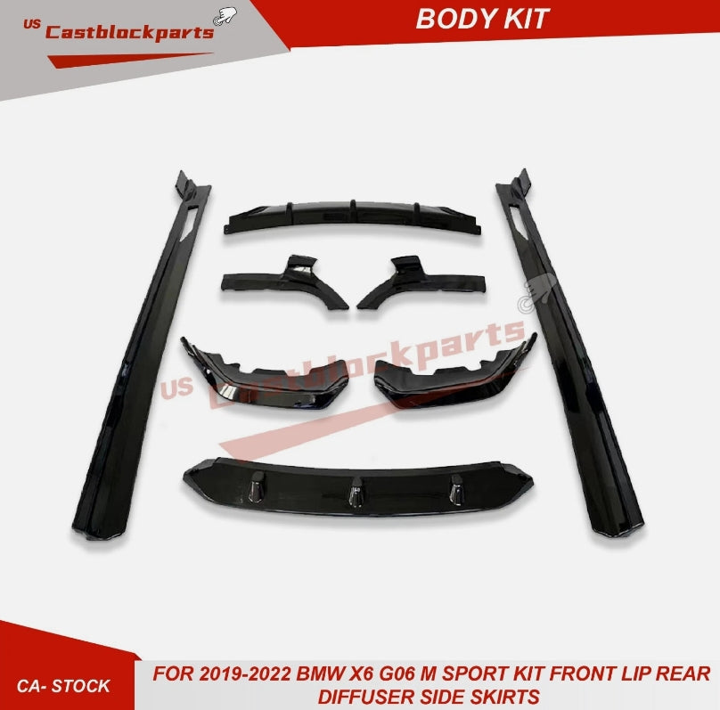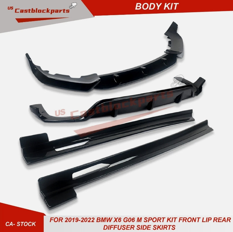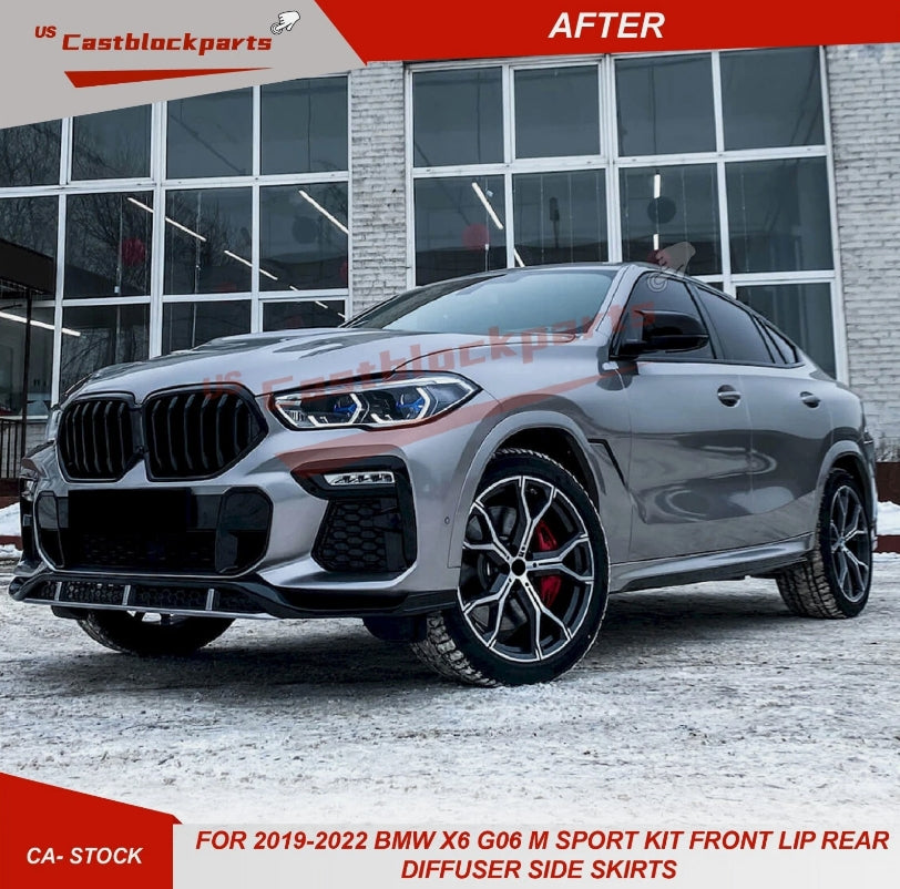 For 2019-2022 BMW G06 X6 M Sport Front+Rear Bumper Lip+Side Skirt Body Kit 8 Pcs