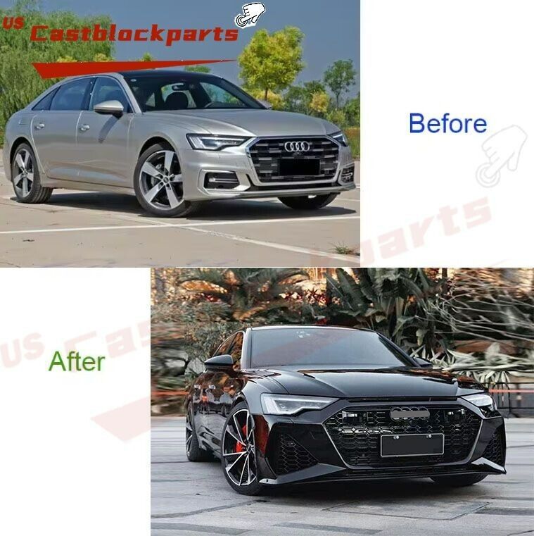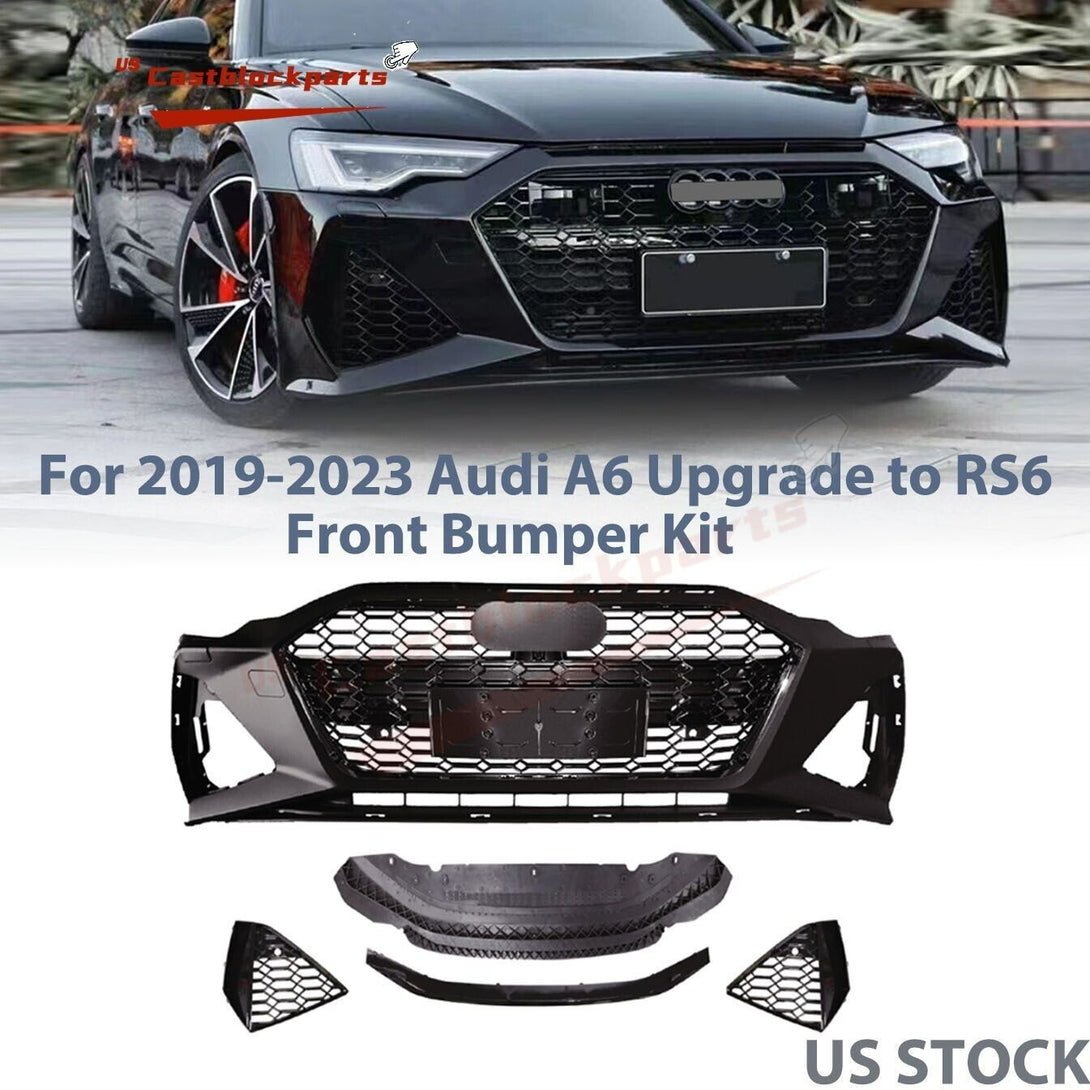 For 2019-2023 Audi A6 Upgrade to RS6 Style Front Bumper Kit Assembly+Grille