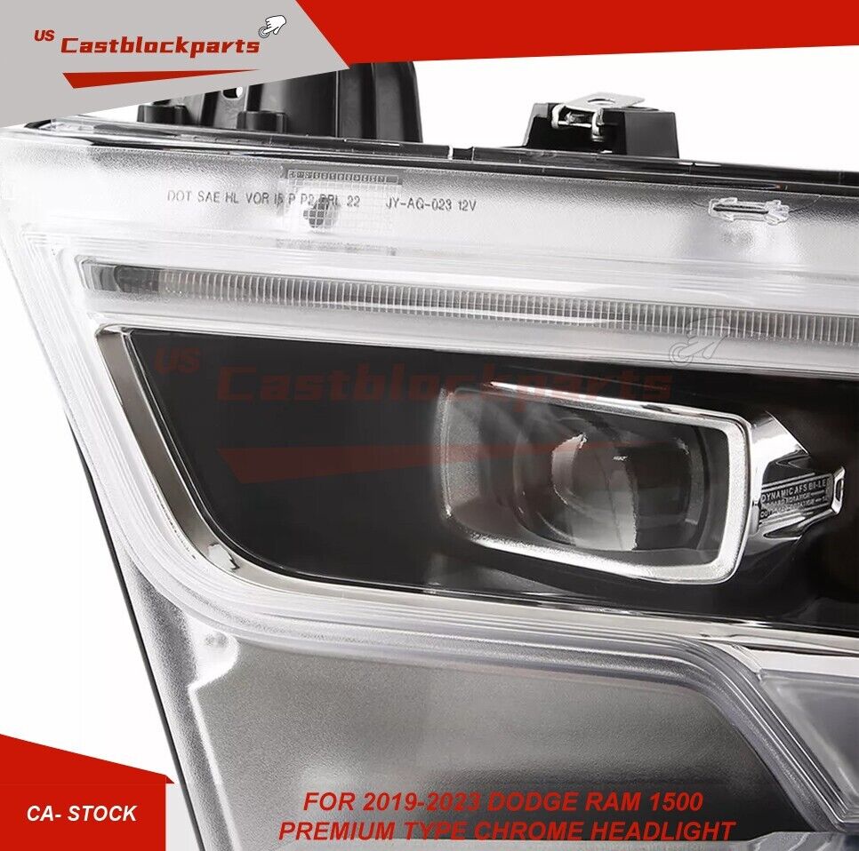 For 2019-2023 Dodge Ram 1500 Headlight Premium Type LED Chrome Lamps Passenger