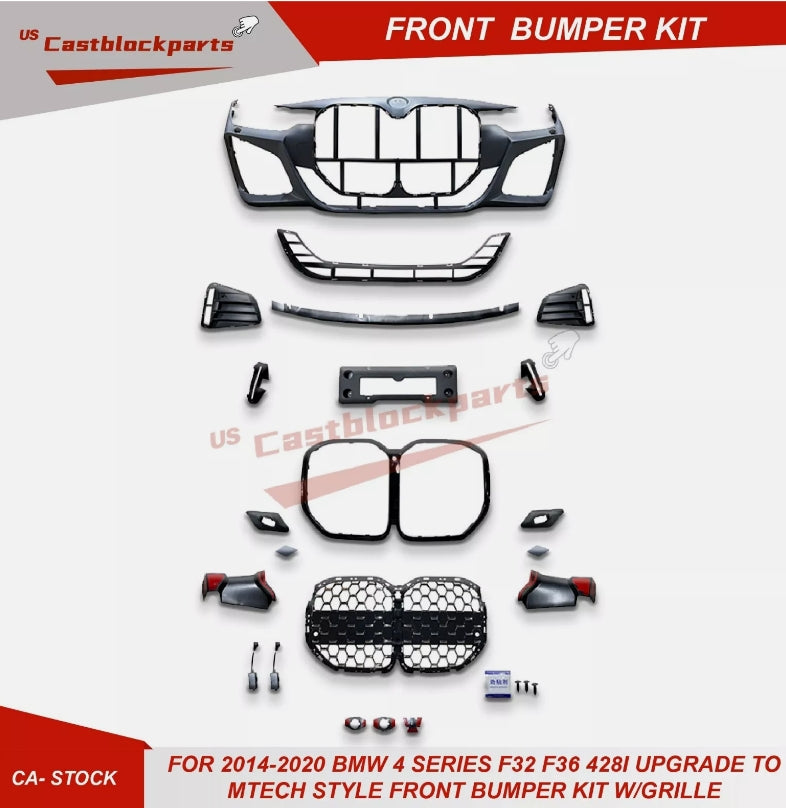 New Fit 2014-2020 BMW F32 F36 4 Series 428i Facelift Front Bumper Kit with Grill