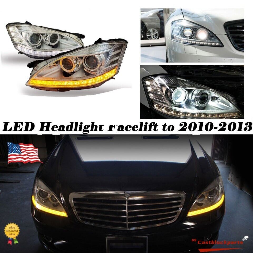 Your W221 S-Class Pre-Facelift will truly more conspicuous from the crowd with our brand new projector headlights, These outstanding W221 upgrade headlights are designed specifically for 2007 2008 2009 S-Class to 2010 2011 2012 2013 Facelift genuine look with LEDs.